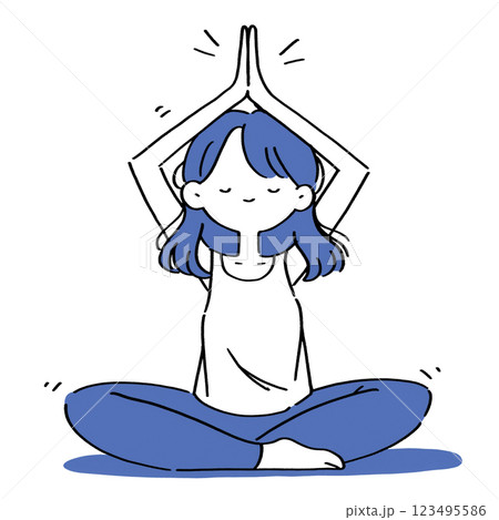 ヨガでマインドフルネス。心と体の調子を整える女性のイラスト素材。