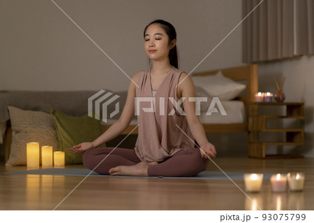 おうちでヨガ生活。心を整える女性のイラスト素材。