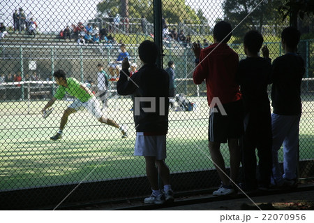テニスを見学する中高生