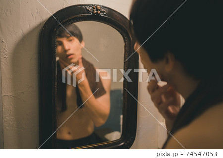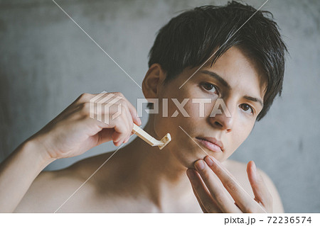 【髪なし・横向き】あごのラインがスッキリとした横顔の女性
