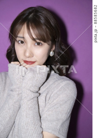 紫の背景紙 おしゃれなポーズの女性