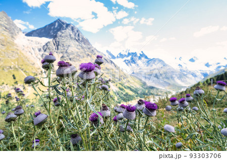 Wild thistle flowers in the high mountains of the Swiss Alps