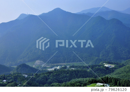 奥武蔵の日向山より望む奥武蔵の山々のパノラマ写真