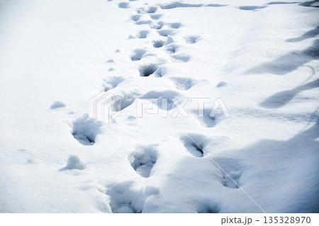 雪道に残る足跡:新雪を踏みしめて進む冬の風景