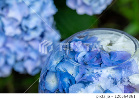 ガラスボールに入った紫陽花