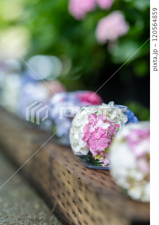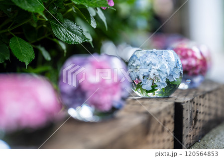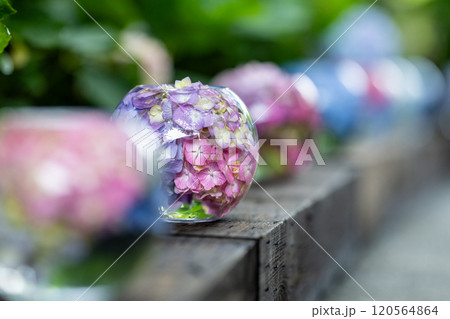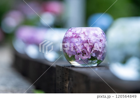 ガラスボールの紫陽花 道列
