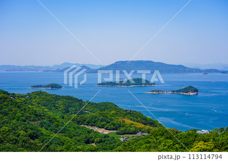瀬戸内海を見晴らす あじ竜王山公園から源平合戦由来の稲毛島、兜島、豊島ほか(香川県高松市庵治町 )
