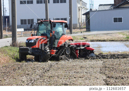 トラクターを使った水田の畦(あぜ)塗り作業