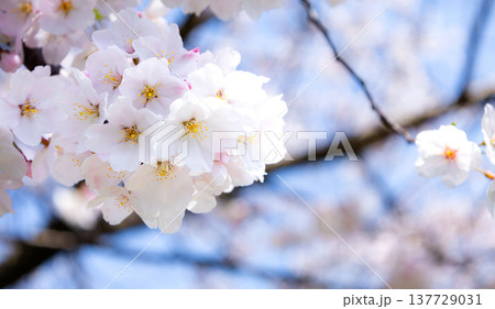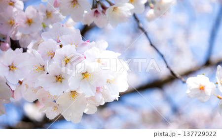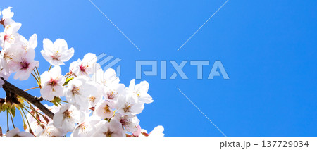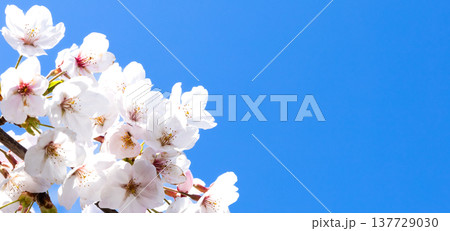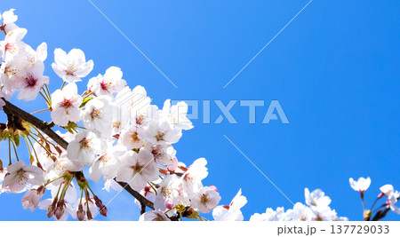 青空が広がる春の陽気のなか生き生きと咲き乱れる桜の花