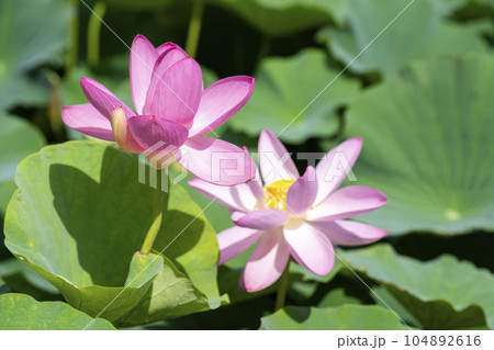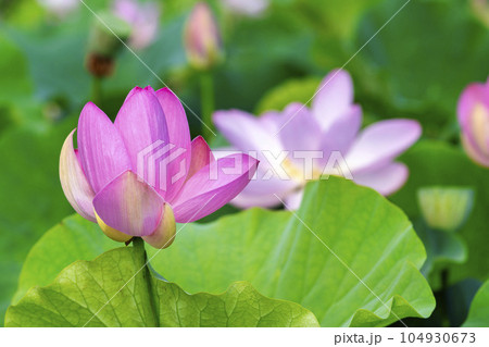 福島県国見町のあつかし千年公園に咲くピンクの中尊寺ハス
