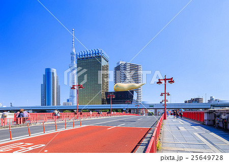 浅草 吾妻橋から東京スカイツリーとアサヒビールタワーの風景