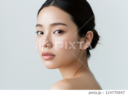 透明感あふれる美肌と自然な美しさの日本人女性のポートレート(AI生成画像)