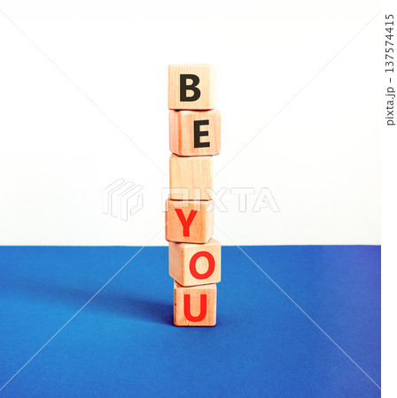 Be you support and help symbol. Concept word Be you on beautiful wooden blocks. Beautiful blue and white background. Business be you support and help concept. Copy space.