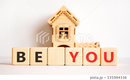 Be you support and help symbol. Concept word Be you on beautiful wooden blocks. Beautiful white background. Beautiful wooden model of house. Business be you support and help concept. Copy space.