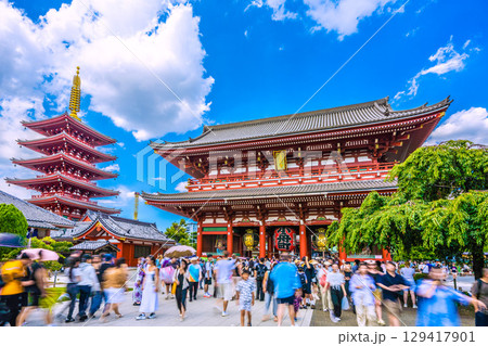 日本の東京都市景観 夏空…(ゲリラ雷雨接近中)…インバウンド続く…外国人観光客らで賑わう浅草寺=8月