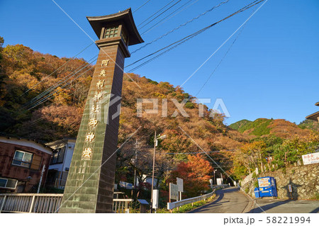 秋の神奈川県伊勢原市の大山山頂28丁目鳥居と大山阿夫利神社前社