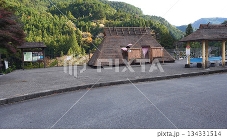 川根本町の秋の接岨峡温泉駅の駅舎とホームの風景(静岡県)