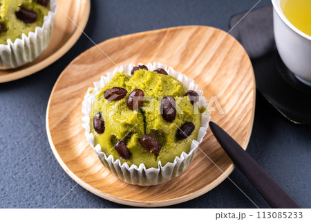 小豆甘納豆の抹茶蒸しパン