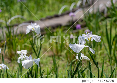 三重県亀山市 亀山公園しょうぶ園の白い花しょうぶ