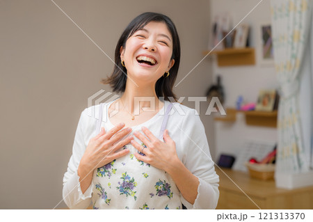 かわいい笑顔で喜ぶのお母さんや家事代行などのイメージ 贈り物をもらって嬉しい母の日のイメージなどに
