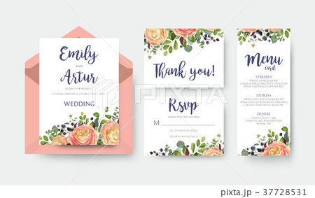 Vector floral Wedding invite thank you rsvp cards