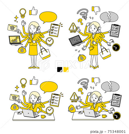 オフィスでマルチタスクをこなすセールスはっぴ女性のセット