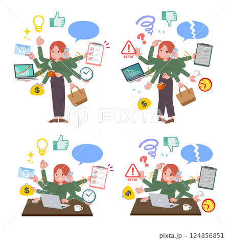 オフィスでマルチタスクをこなす赤髪女性のセット