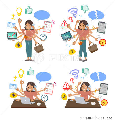 オフィスでマルチタスクをこなす褐色肌女性のセット