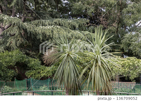 Cordyline australis, commonly known as the Cabbage Tree or Torbay Palm, is located in Gunnersbury Park.