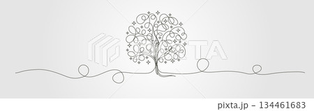 Continuous line drawing of oak tree vector design, shady tree with random lines illustration