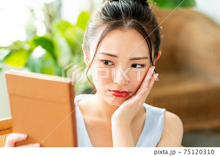 仕事がない 暇 退屈 フリーランス 自営業 若い女性 在宅勤務 仕事 困る 悩み イラスト素材