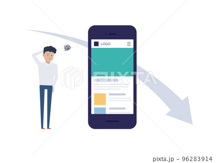 Webサイトを作ったのに成果が出なくて困っている男性のイラスト素材