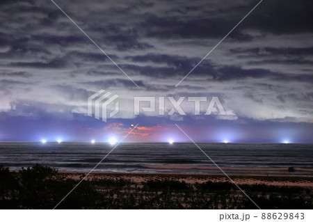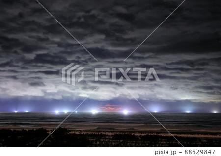 太平洋のイカ釣り漁船のいさり火(青森県)
