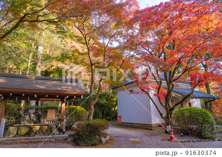 滋賀県多賀町 秋の胡宮神社の血染めのもみじと手水舎
