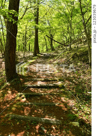 新緑のゴールデンウィーク、山梨県北斗市石空川(いしうとろがわ)渓谷の登山道を北精進ヶ滝に向けて歩む