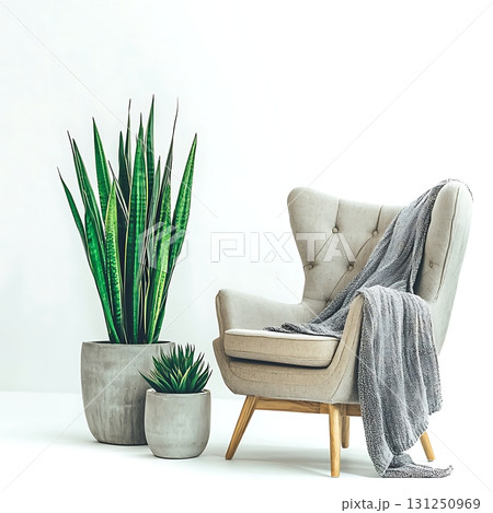Modern Cozy Living Room Corner with Indoor Plants and Comfortable Chair Setup