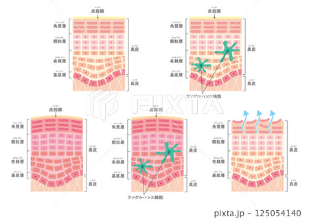 肌の断面のイラスト/ランゲルハンス細胞の追加(名称あり)