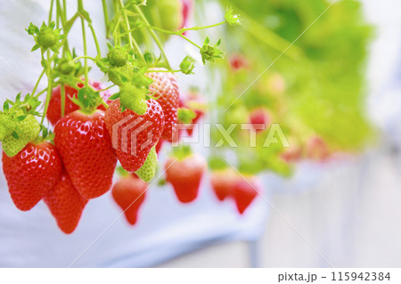 ハウス栽培のいちご 苺 果物 ビニールハウス