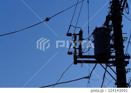 静かな夕暮れと電信柱のシルエット - いつもの風景 - 3:2