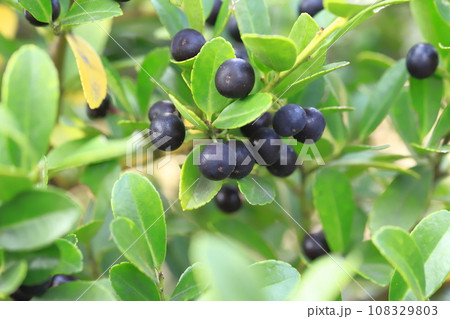 黒い実をつけた犬黄楊(イヌツゲ)