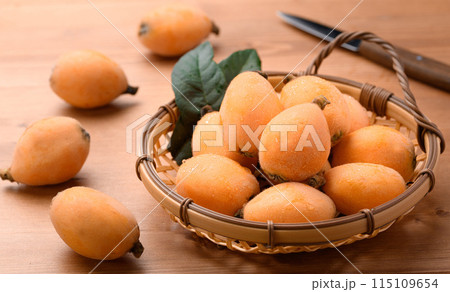 初夏の味覚 びわ (香川県産)大薬王樹 木目背景