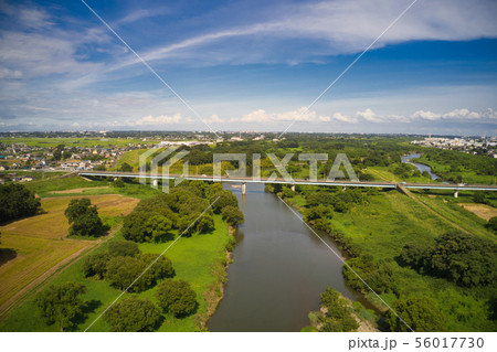 入間川と緑の河川敷 埼玉県川越市 (ドローンによる空撮)