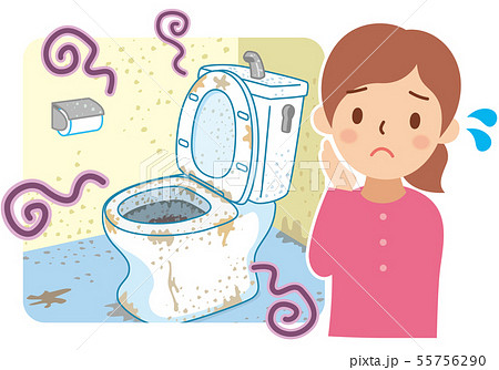 汚れたトイレと困る女性