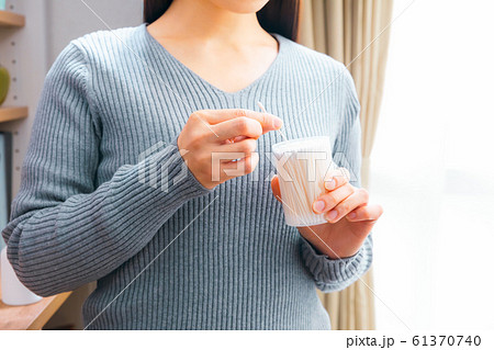 ベビー綿棒を取り出す女性