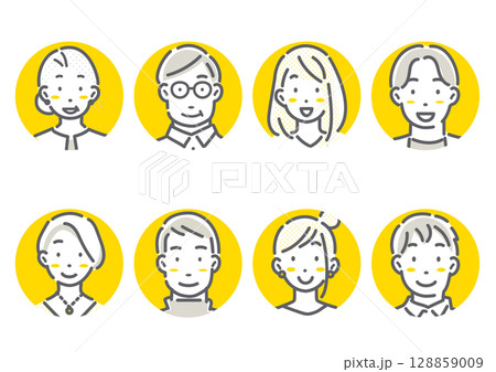 多世代の男女のアバターアイコンイラストセット シンプルでお洒落な線画イラスト