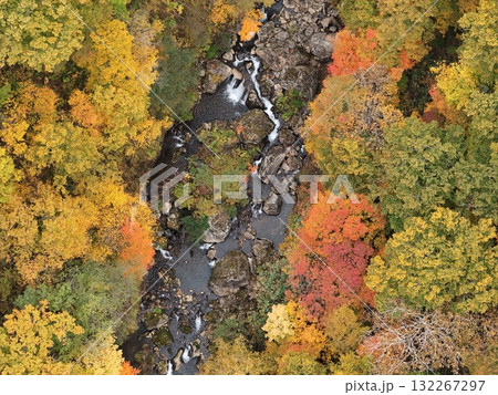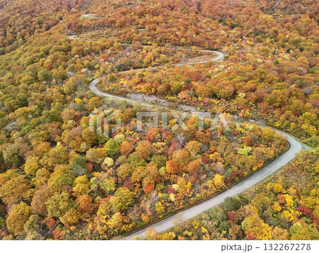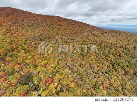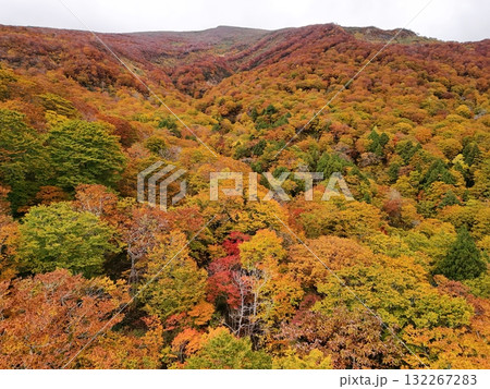 栗駒山の紅葉 空撮 パノラマ写真