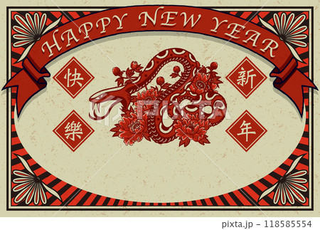 2025年賀状テンプレート「蘭字デザイン」ハッピーニューイヤー 英語添え書き付