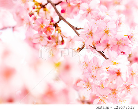 春の陽射しを浴びる満開の淡いピンク色のジンダイアケボノ桜