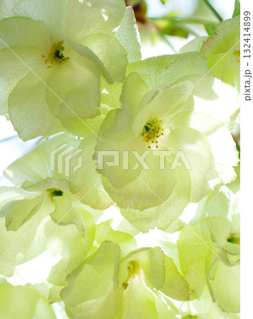 緑の桜の花びらのクローズアップイメージ 背景素材