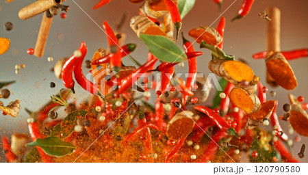 Capturing The Dynamics Of Spice Explosions In Frozen Motion: A Culinary Abstract Showcase. Experience The Vibrant Energy Of Culinary Art.